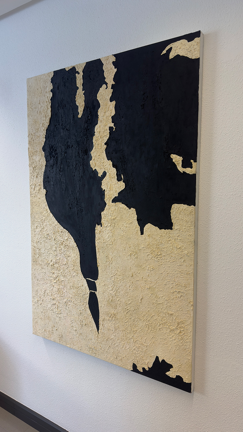 Obras en las que la representacion del objeto es secundaria, todo reside en la riqueza cromatica y en la simplificacion formal a base de composiciones y obras texturizadas en relieve, y realizadas muchas de ellas a base de materiales primitivos y sencillos, como el yeso y pigmentos naturales ,que conectan con la naturaleza creando superficies que exploran la interacción entre luz, sombra y color.